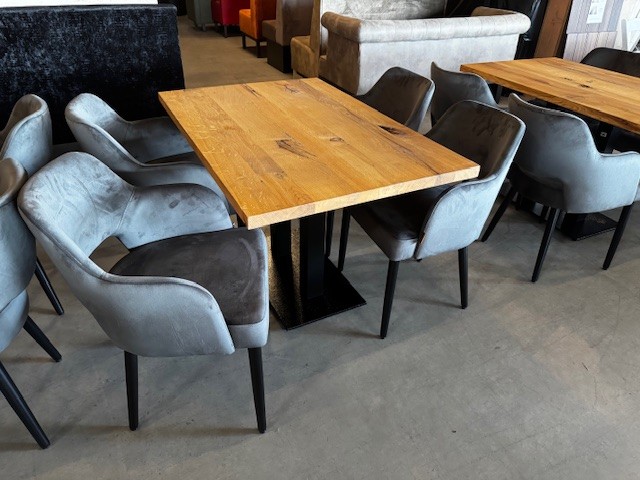 Partij 01838 is een restpartij van 12 stuks armstoelen (model Regina) en 3 tafels.